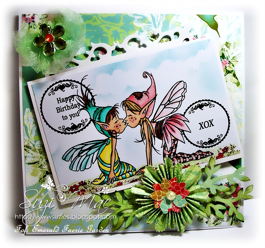 I've gone for option 3 using a sweet Sarah Kay image which has been coloured with promarkers and Derwent artist pencils using sansador oils. My flowers are all hand made from the Spellbinders Rose collection die cuts. I curled the centre of each petal using my tweezers and added little pearl flat back hearts. The full recipe for my card is below this post.